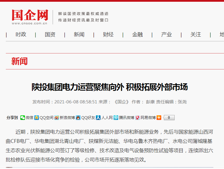 国企网:陕投集团电力运营聚焦向外积极拓展外部市场