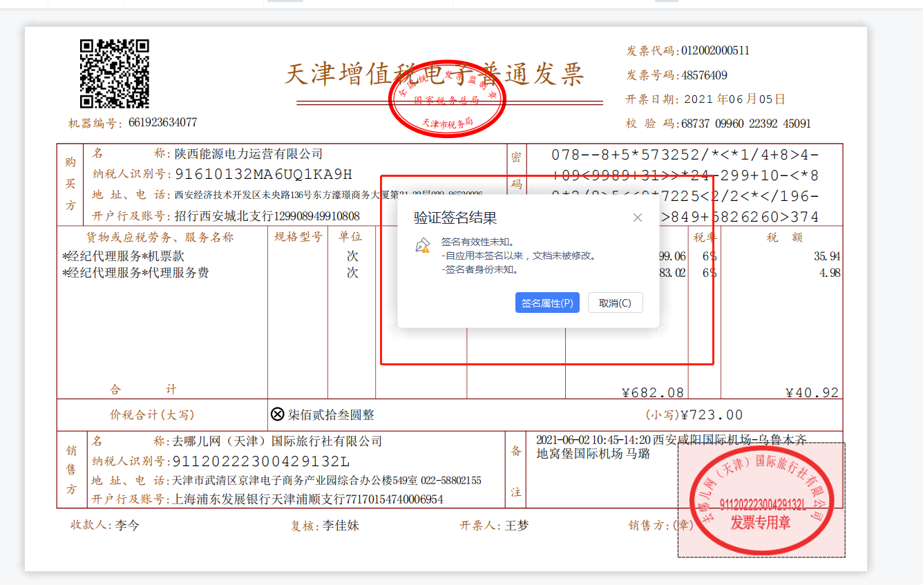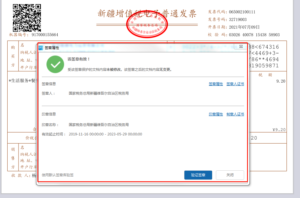 🌄3步,单击“手机安全效验”后,标记手机安全效验然而表现內容框,下述图图甲中,若签章管用且普通发票內容未被篡改,则手机安全效验然而表现为“该签章管用!自应用软件本签章近一年来,文档文件內容未被编辑”,还有鼠标单击“签章攻击速度”,攻击速度中表现的签章內容应与票面签章完全一致。