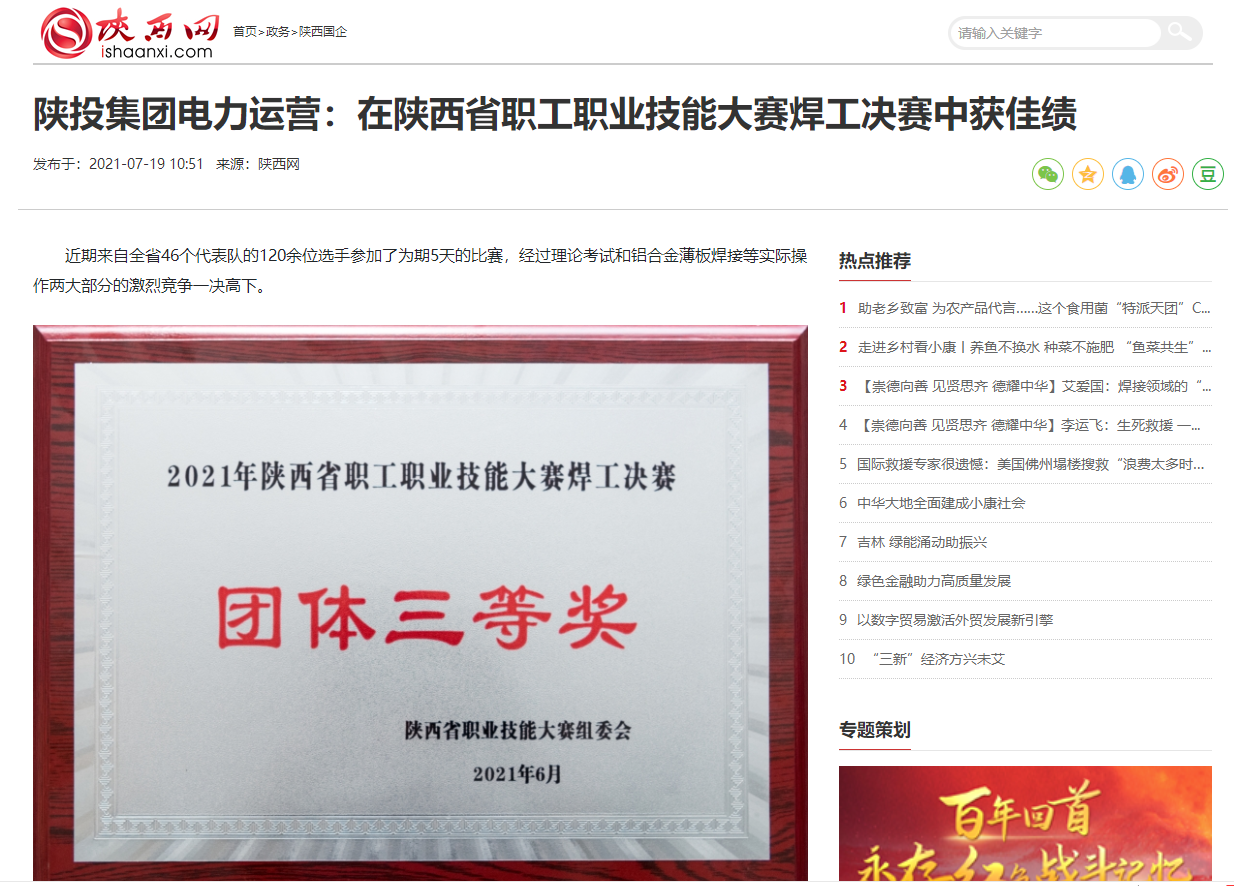 陕西网:陕投电力运营在陕西省职工职业技能大赛焊工决赛中获佳绩