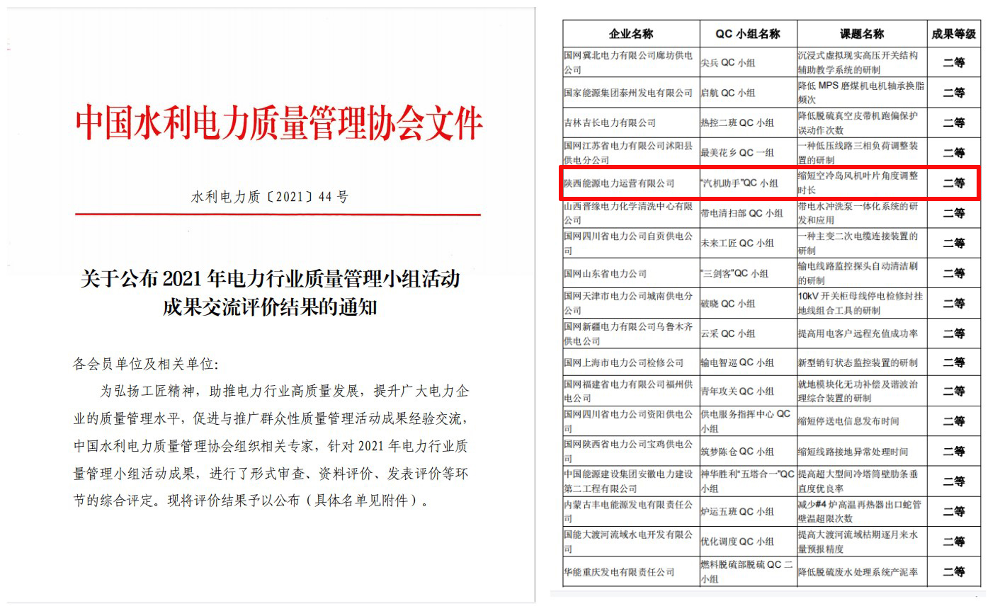꧅ 日后,中国现代水利枢纽电量的使用网设备质工作系统产业促进会揭晓了2021 年电量的使用网设备产业质工作系统队伍运动作品得奖花名册,总部QC作品可是我自各省电量的使用网设备产业各院校的1129项完善的作品中胜出,收获提名奖。该作品顺序换取2030年度安徽省电量的使用网设备产业产业促进会质工作系统队伍运动甲等奖、“秦创原·泾河新陈杯”2022年安徽省去创新最简单的方法选拔赛提名奖等。推进该作品研制开发的“本身空冷岛高压风机叶面的视角精确测量特用APP”已达成国家的配用最新型专利申请授权书。