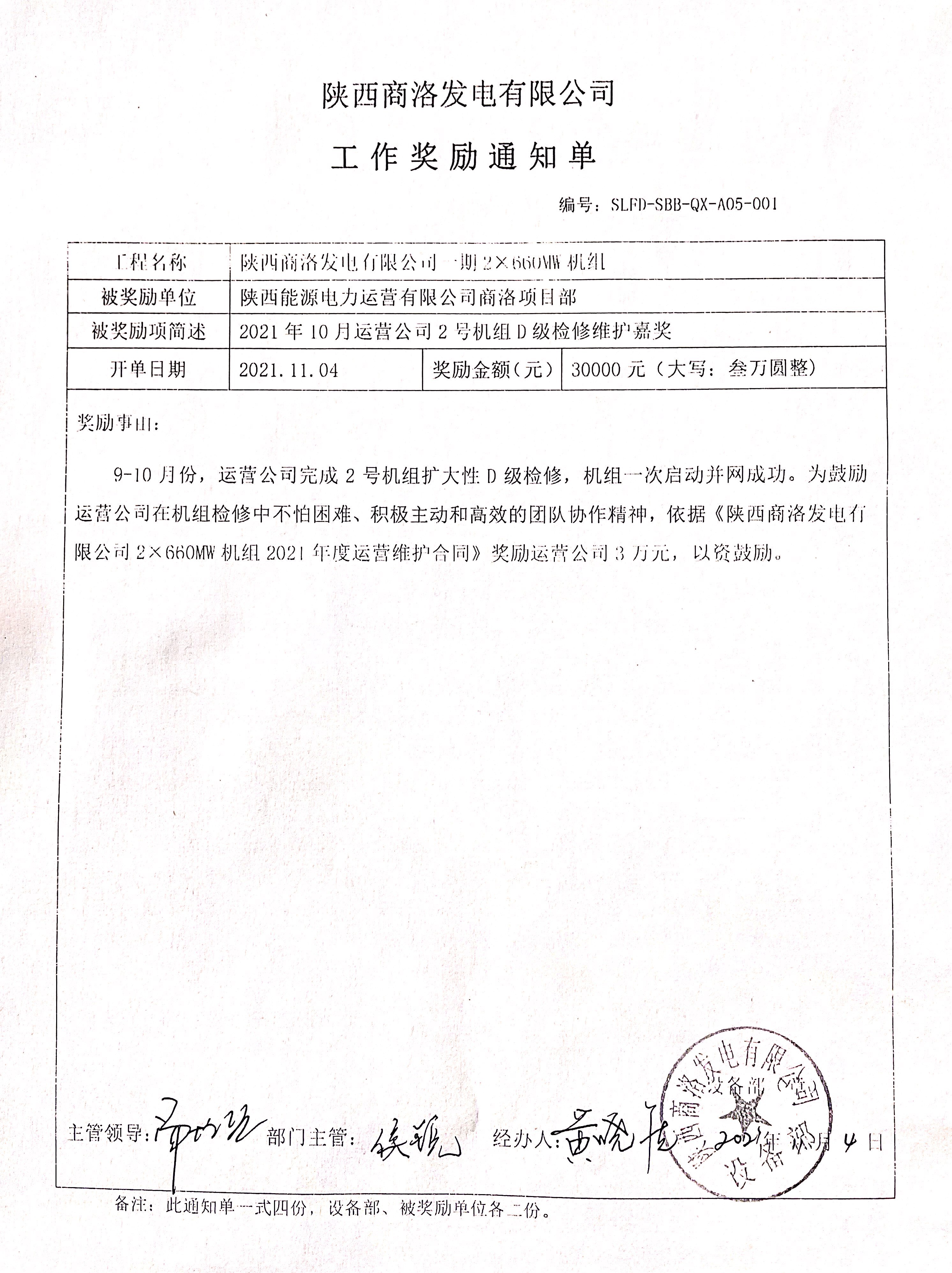 ♚ 近两天,商洛顶目部收到了是来自于商洛发电厂工厂的权益单消息单,权益总额总计下来3000元,表现了消费者方对顶目部在我院#2超临界锅炉缩小性D修中无惧比较、敢于担当精神的“运营管理铁军”的有效充分的确信。