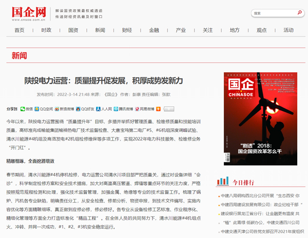 国企网:陕投电力运营:质量提升促发展,积厚成势发新力