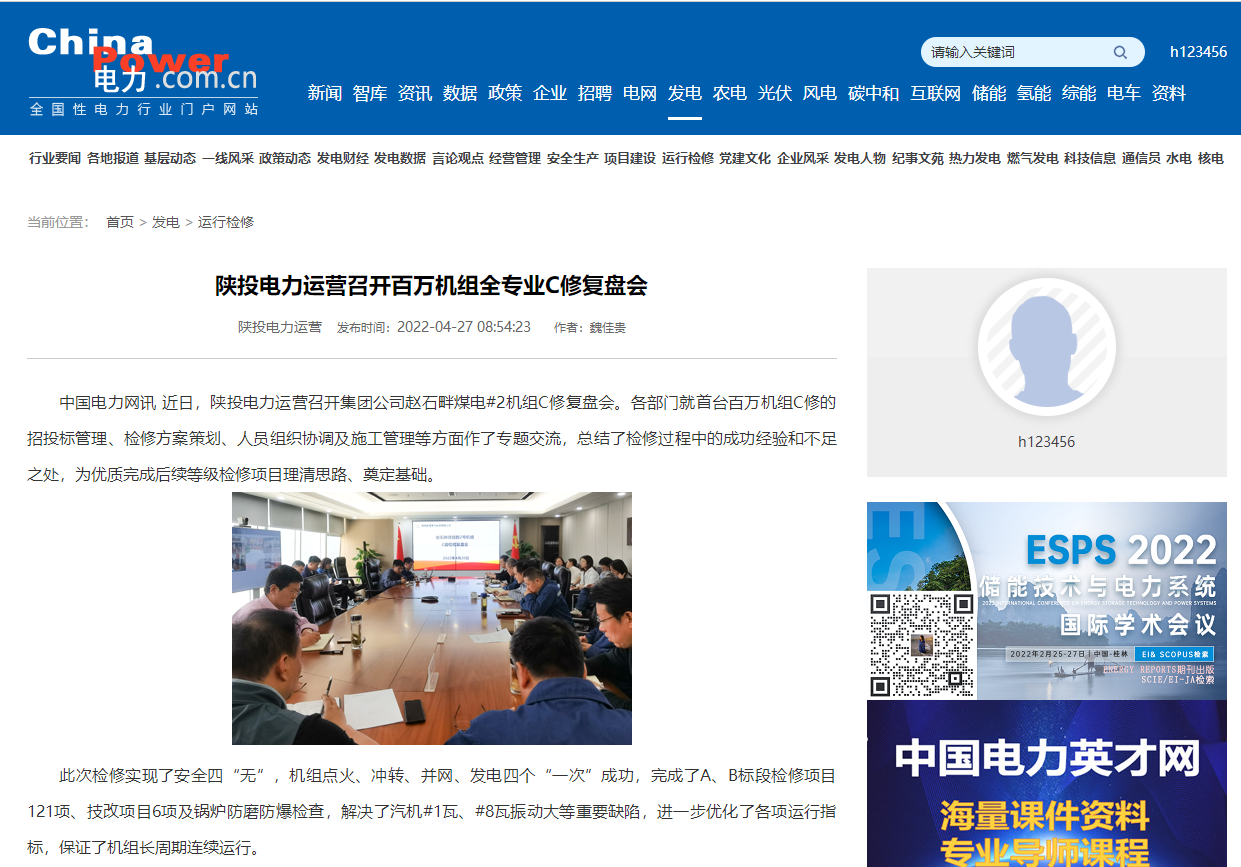 中国电力网:陕投电力运营召开百万机组全专业C修复盘会