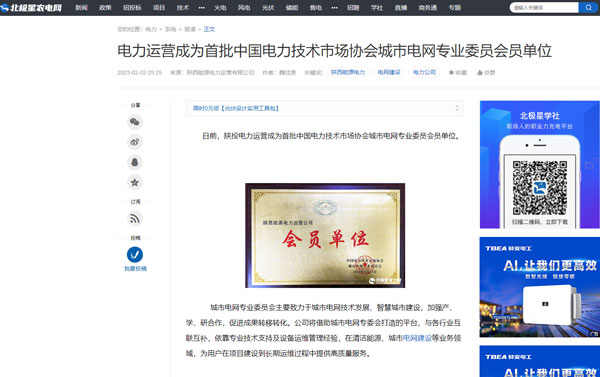 北极星电力网:电力运营成为首批中国电力技术市场协会城市电网专业委员会员单位