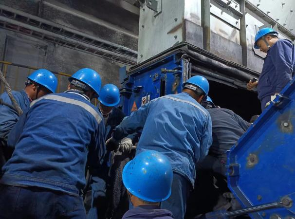ꦑ 维修方式确保后,两队技术人员转续武斗,呈现维修。在轰隆的机械设备声中,在焊接烟尘萦绕的碎小煤机车间内,大家抢事件、争项目进度,路经42小时内酣战,于12日零晨5点完结抢险,共实现20枚锤臂的折除、回装及9枚高铬合金锤头更改岗位。