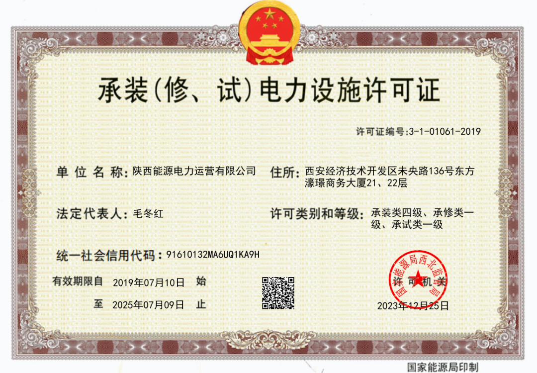 ෴ 14月25日,单位正式宣布得到部委电网能源局西北部监管部门局签发的承修、承试电网场地设施6级执照经营证,称得上甘肃省第7家时有该2项执照的各个企业,单位执照建没拿得新翻过。