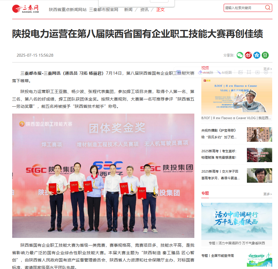 三秦网:陕投电力运营在第八届陕西省国有企业职工技能大赛再创佳绩