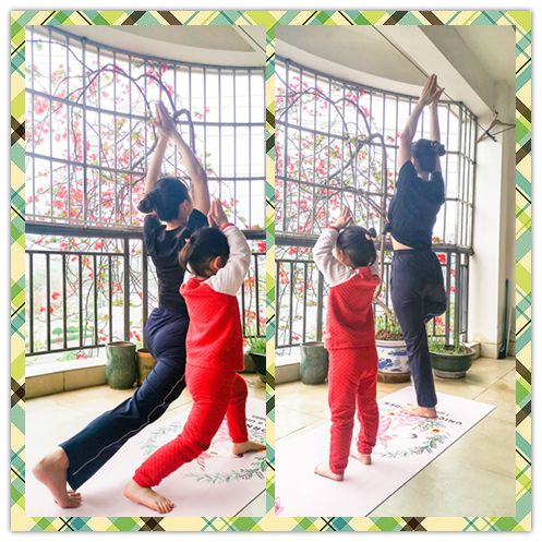 ಞ 最希望每日旱晨带上幼儿园儿童在开满地角梅的阳台窗实操普拉提,坚守岗位待在家里,锻炼运动身体健康,静候春来。