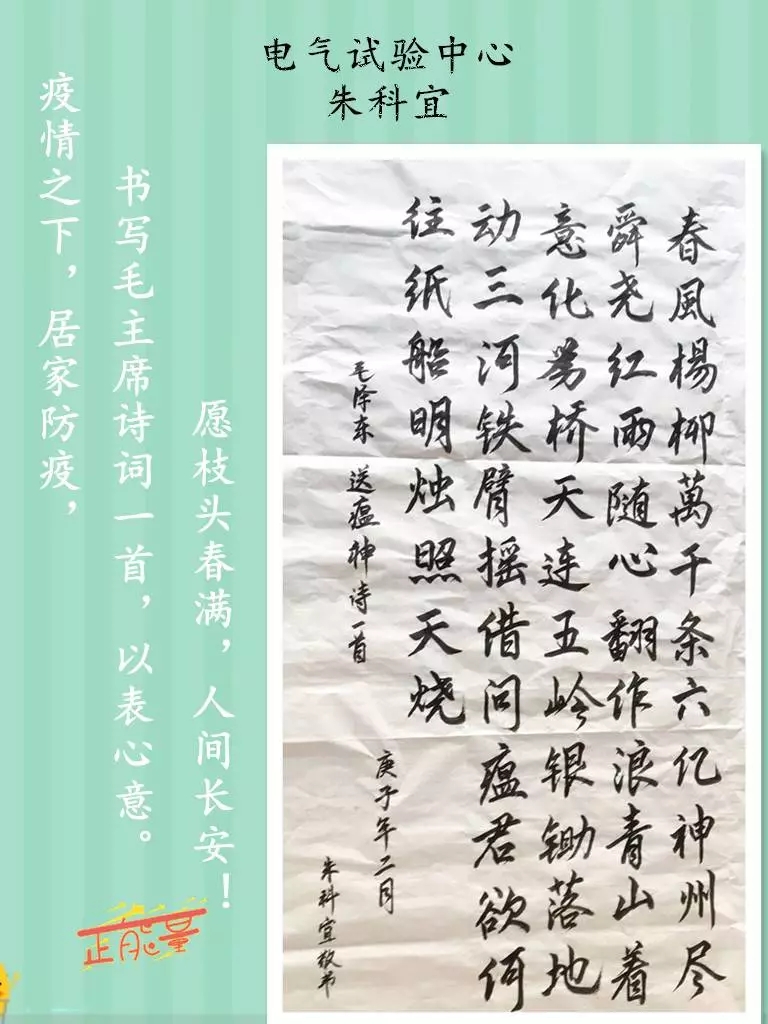 病疫情而下,家用防预,手写毛名誉主席古诗词一曲,以表真情。愿满树春满,人世间福田!