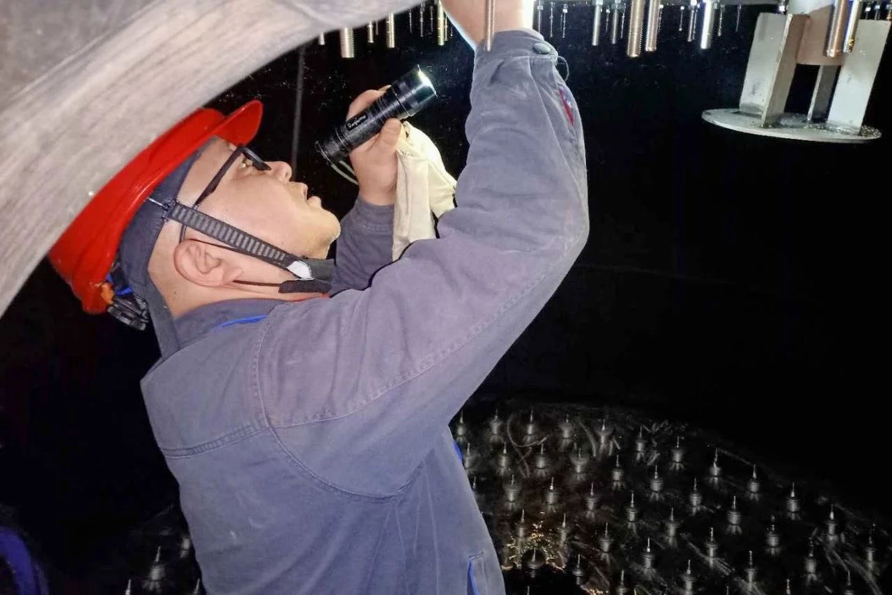 7月12日,江水川工程部灰硫正规专业在确定#1释放塔集水坑泵测试