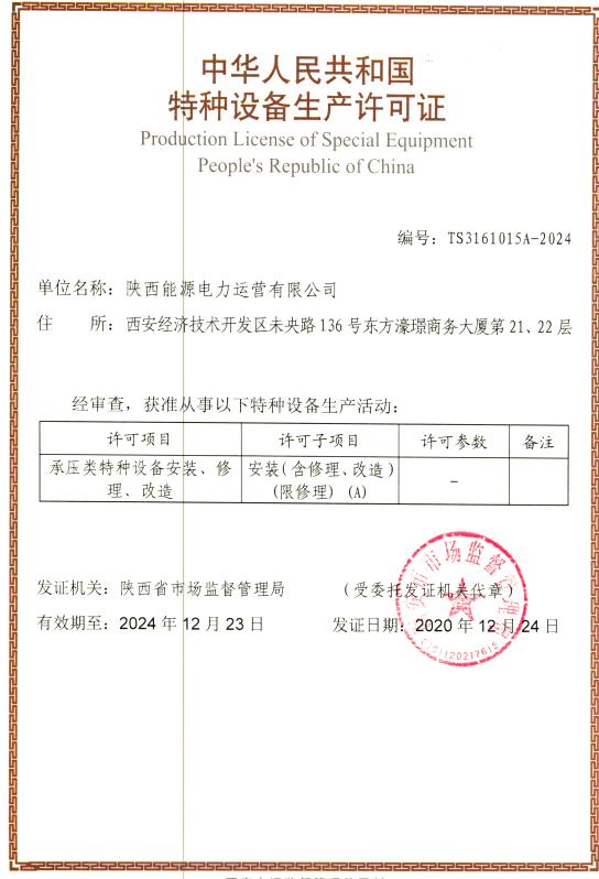 喜讯!公司喜获承压类特种设备安装(限修理)(A)资质