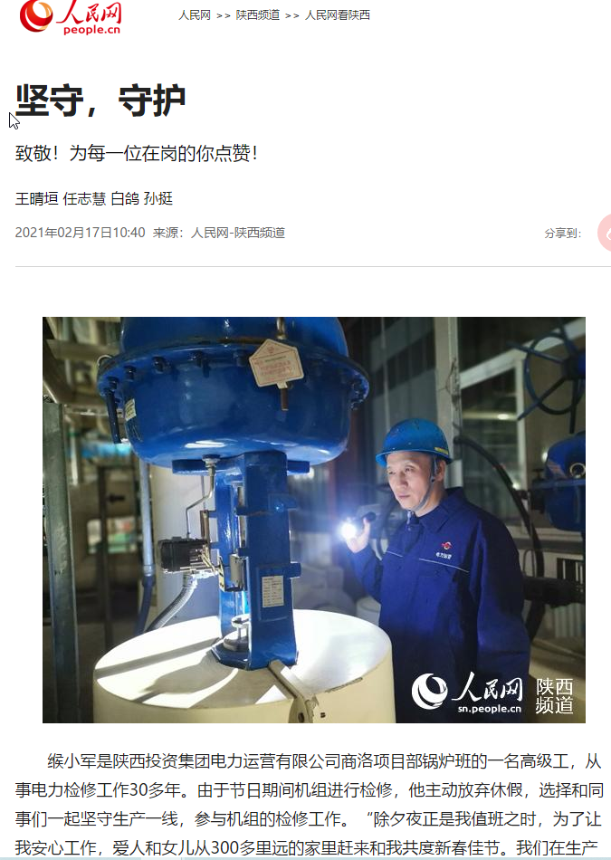 ♓ 缑小军是河南投资费用实业能量产品运营局限平台商洛新施工单位水器班的当名初级工,作为能量检测业务30历经多年。伴随节庆日期间内发电飞机机组通过检测,他主動逃避休假,选泽和与和客户洽谈们一同严守分娩标杆,组织发电飞机机组的检测业务。“大年夜之夜夜该是我值班人员之际,是为了给我专心业务,老伴和闺女从300多里远的家庭赶往我和他相守迎新年佳节。他们在分娩标杆吃一吨不同寻常的年饭,解决没事个有个性化作用的大年夜之夜夜。” 缑小军说。